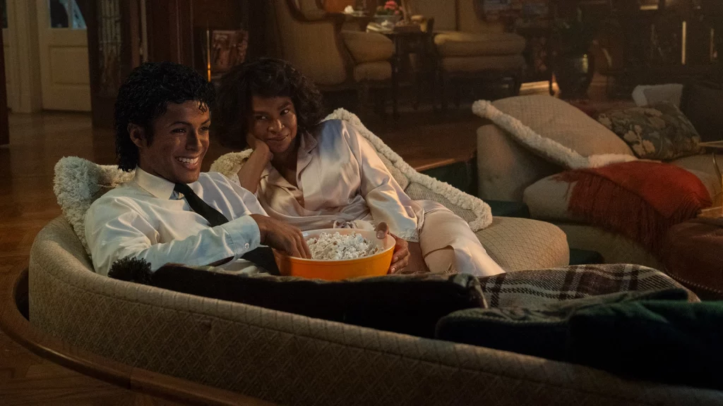 Allerdings bleiben vor allem die Bühnenauftritte sowie das nachgestellte Thriller-Video die grössten Highlights des Films. Jaafar ist hier voll und ganz in seinem Element, und nicht selten blendet man in den tänzerischen Sequenzen aus, dass hier nicht der echte King of Pop zu sehen ist. Hierbei gelingen durch länger gezeigte Auftritte auch immer wieder atmosphärisch inszenierte, liveähnliche Momente, die visuell schlichtweg beeindruckend-originalgetreu in Szene gesetzt wurden. Colman Domingo befeuert schliesslich als drillender Vater Joseph Jackson mit seinem einschüchternden Schauspiel den verlagerten Fokus auf die stark vereinfachte Black or White geprägte Narrative des Biopics.